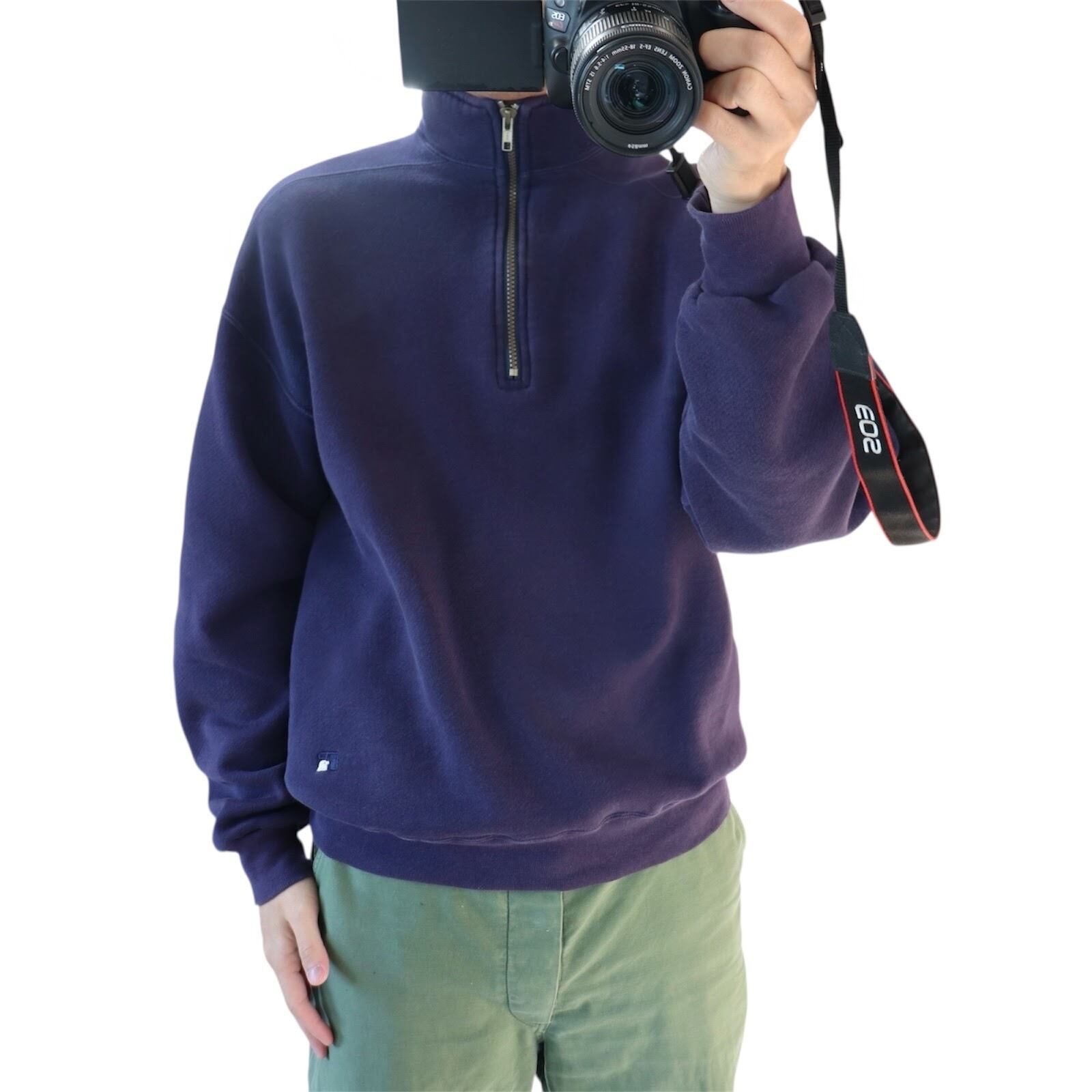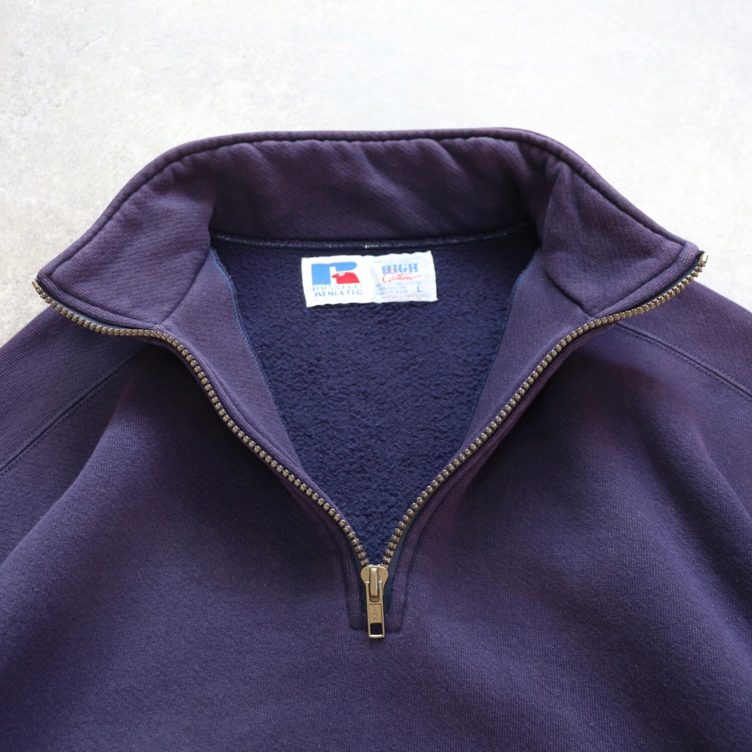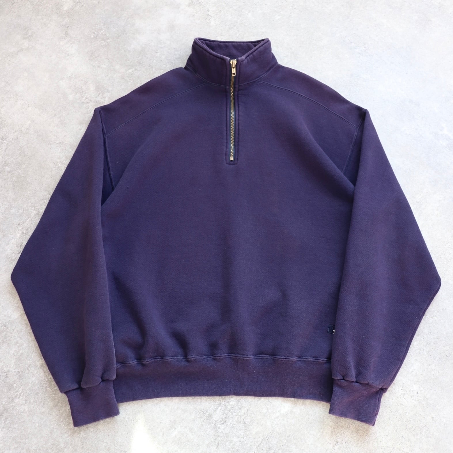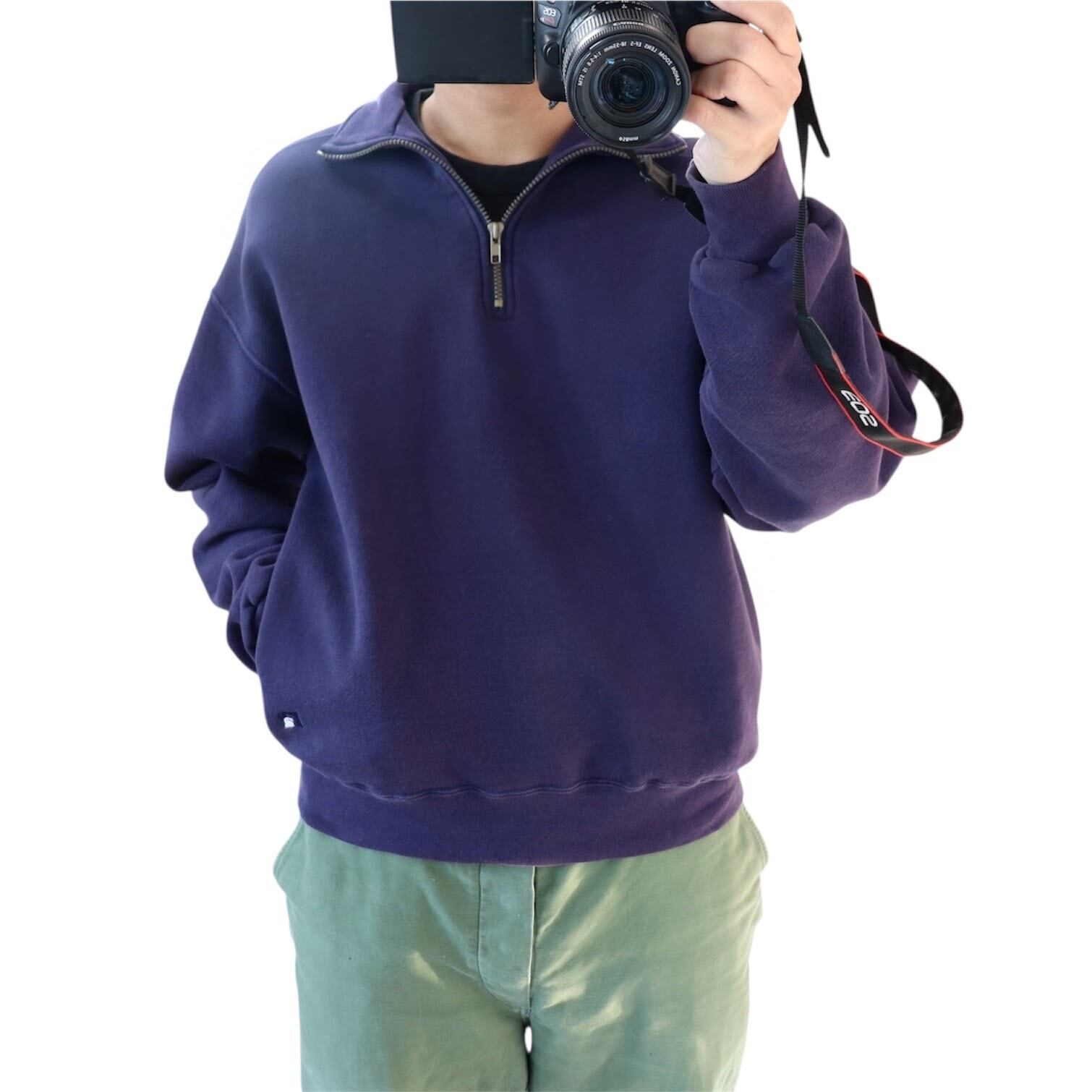 ナス紺 High Cotton USA製 90's Russell Half zip Sweat Pullover ラッセル ハイコットン ハーフジップ スウェット プルオーバー [L]