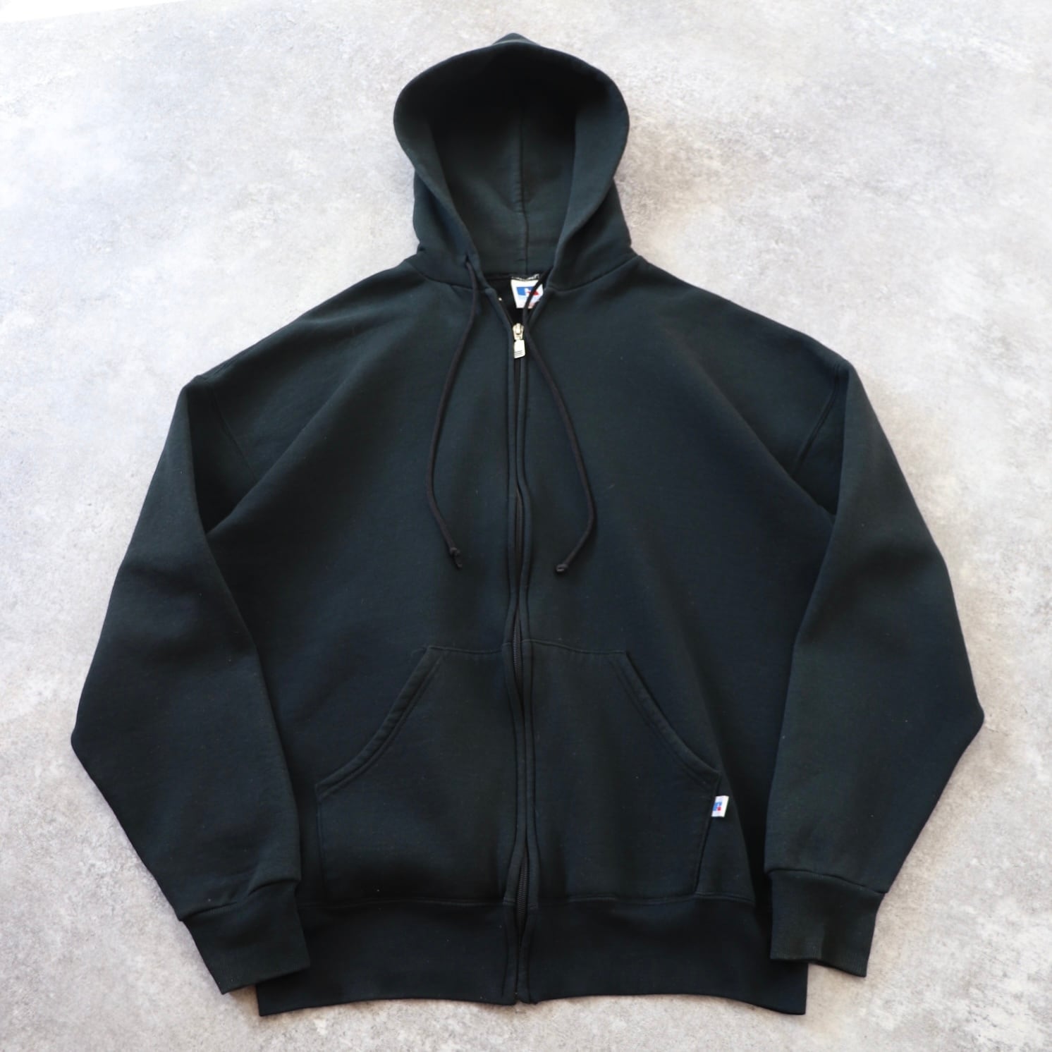 90's Black Russell Athletic zip up hoodie ブラック ラッセル フルジップ パーカー [XL]