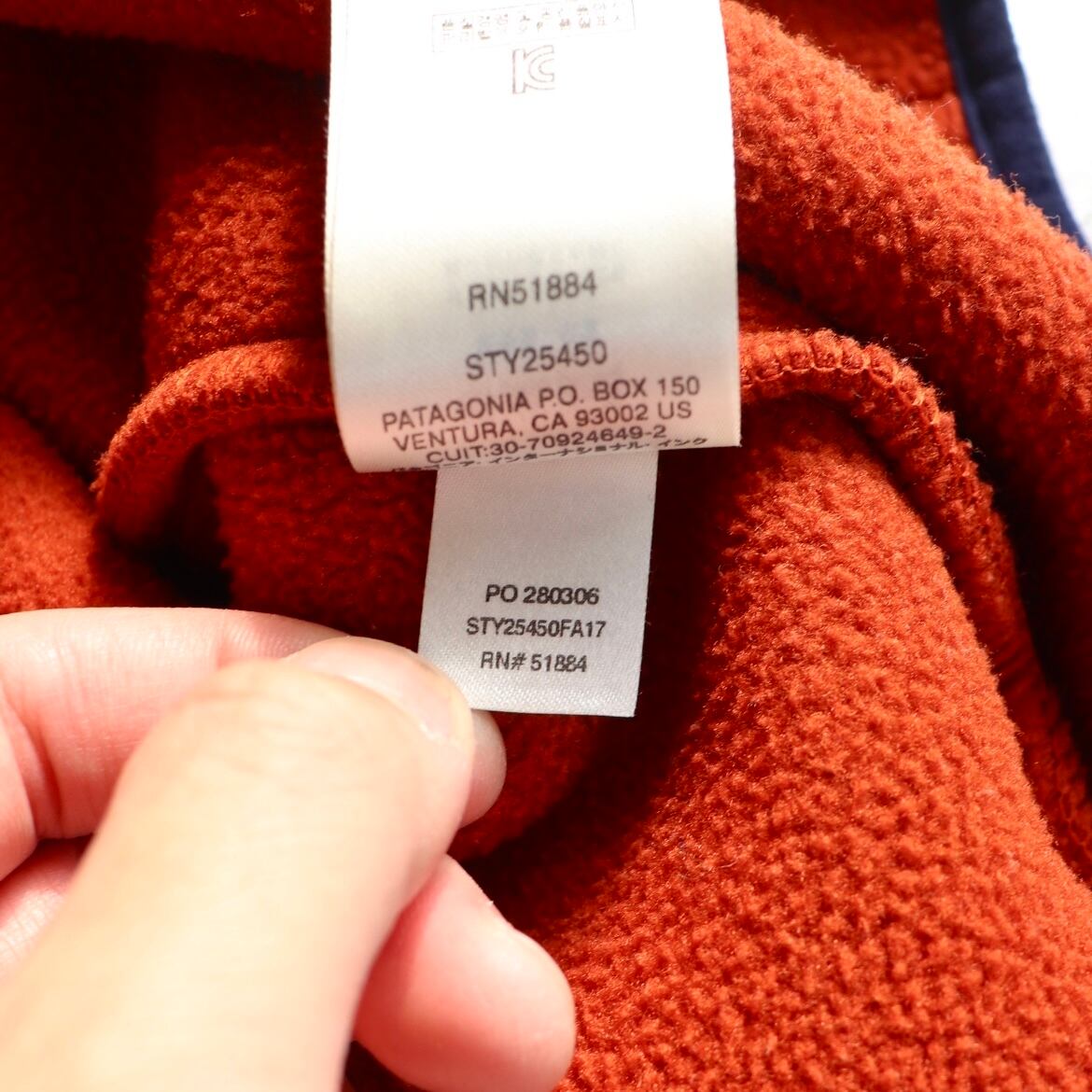 年代は浅めですが、パタゴニアらしいオレンジにパイピングがネイビーの間違いない配色です。