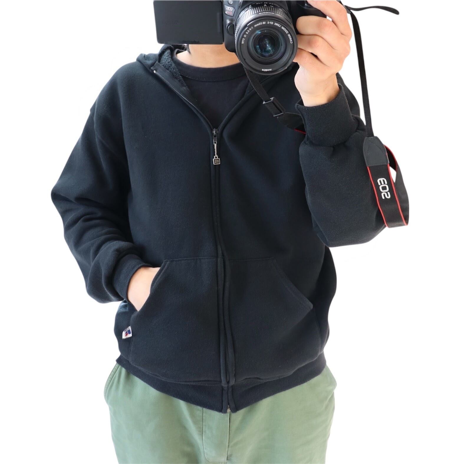 USA製 Black 90's Russell Athletic zip up hoodie ラッセル ブラック フルジップ パーカー [fits M]