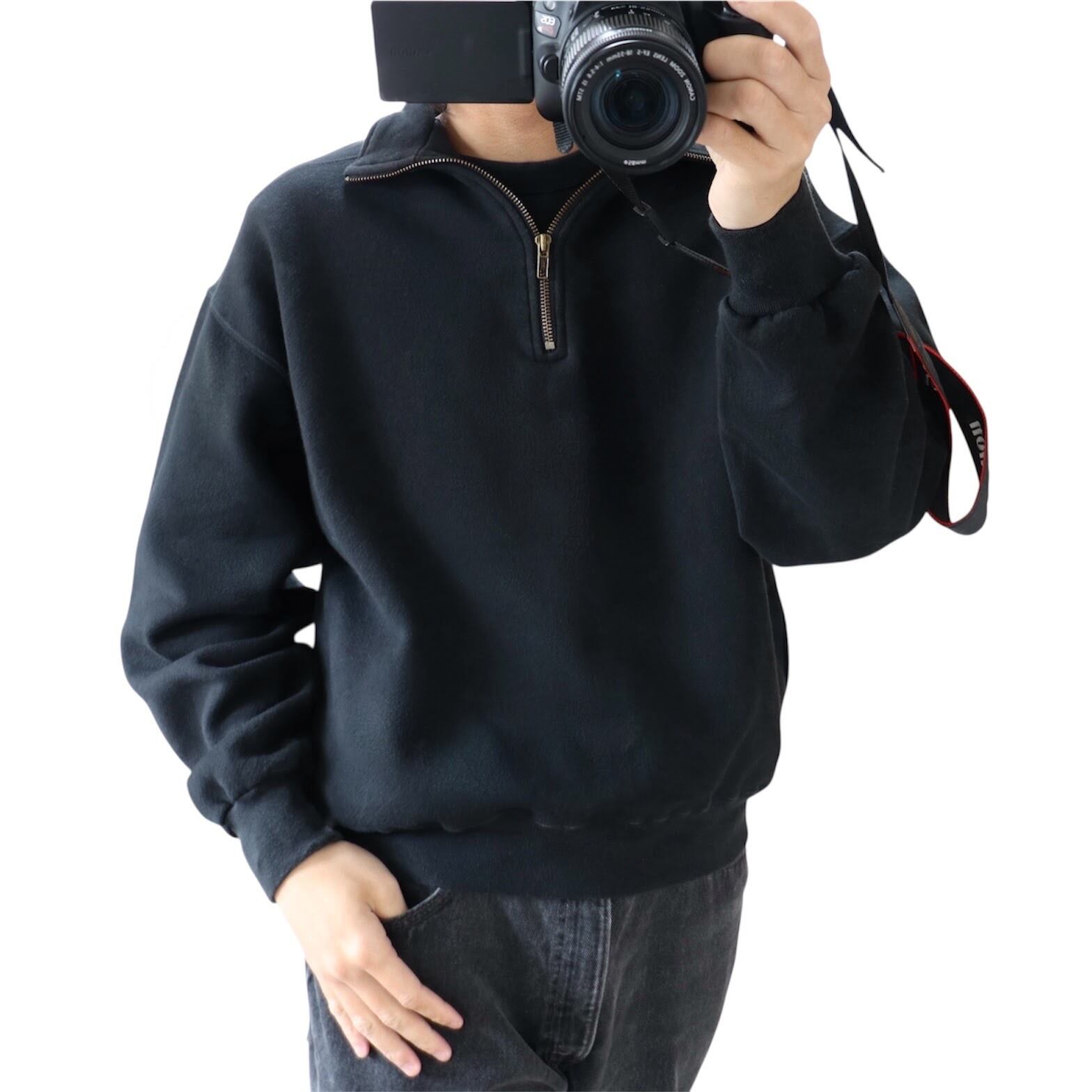 ハイコットンのブラックってだけでも探すの難しいですが、ハーフジップなるとより出ない一枚ですので、ぜひこの春の一軍スウェットに。