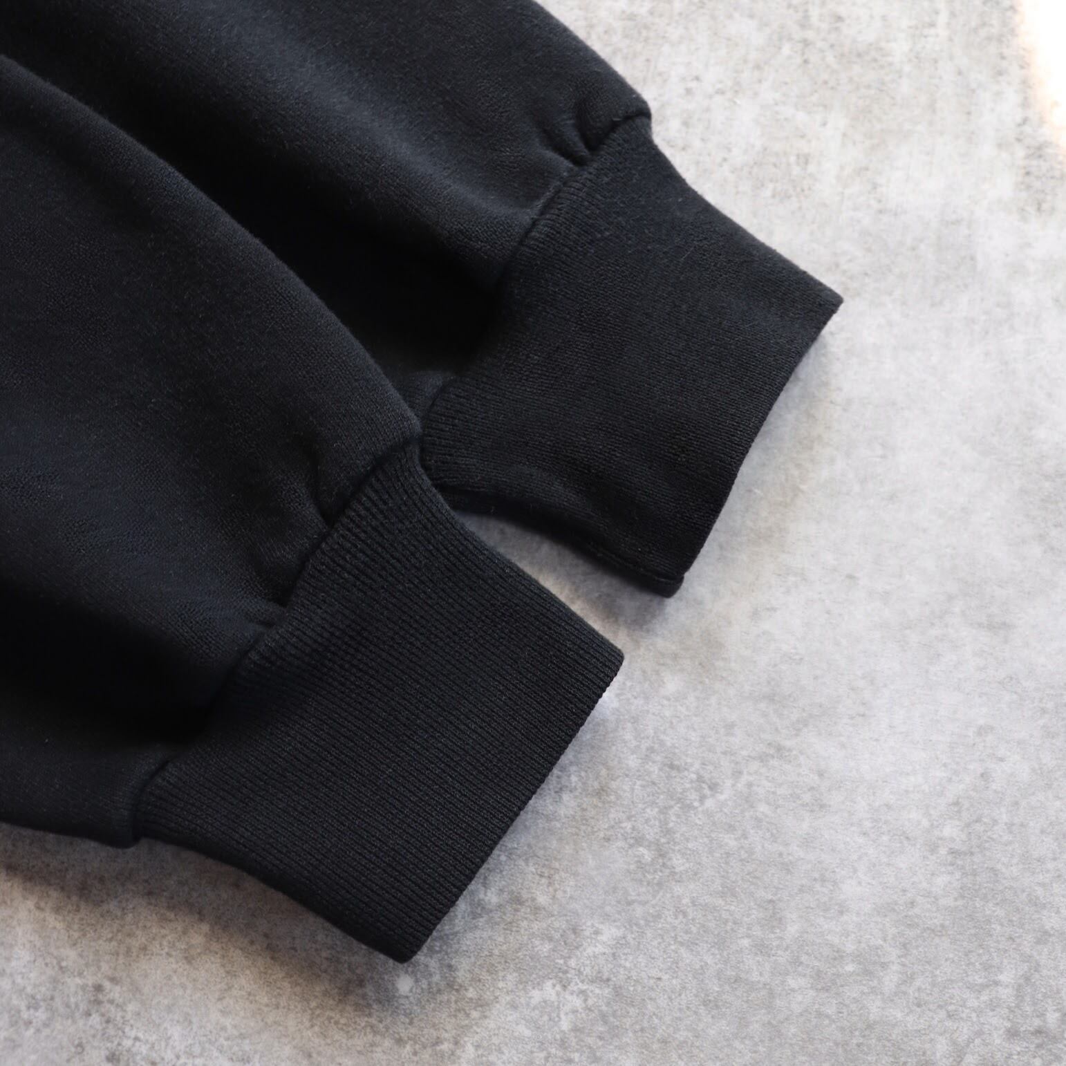 無地ブラックならではの使い勝手の良さで、アイテム選ばす取り入れやすく、一枚でも十分様になる一着。