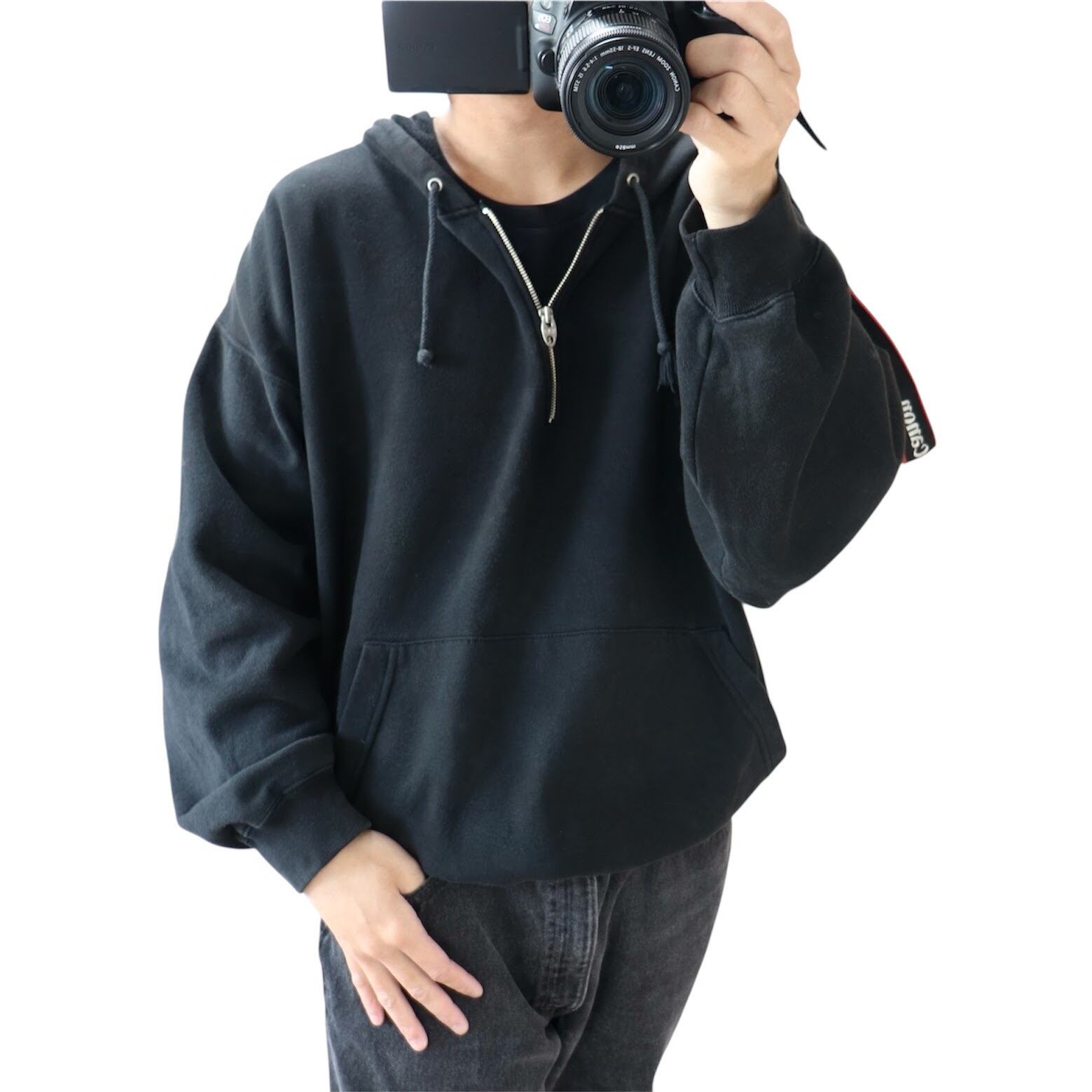 その中でも滅多に出ないハーフジップタイプのフーディで、ブラックのXLとサイズ、カラーともに妥協なく完璧に条件を抑えた個体。