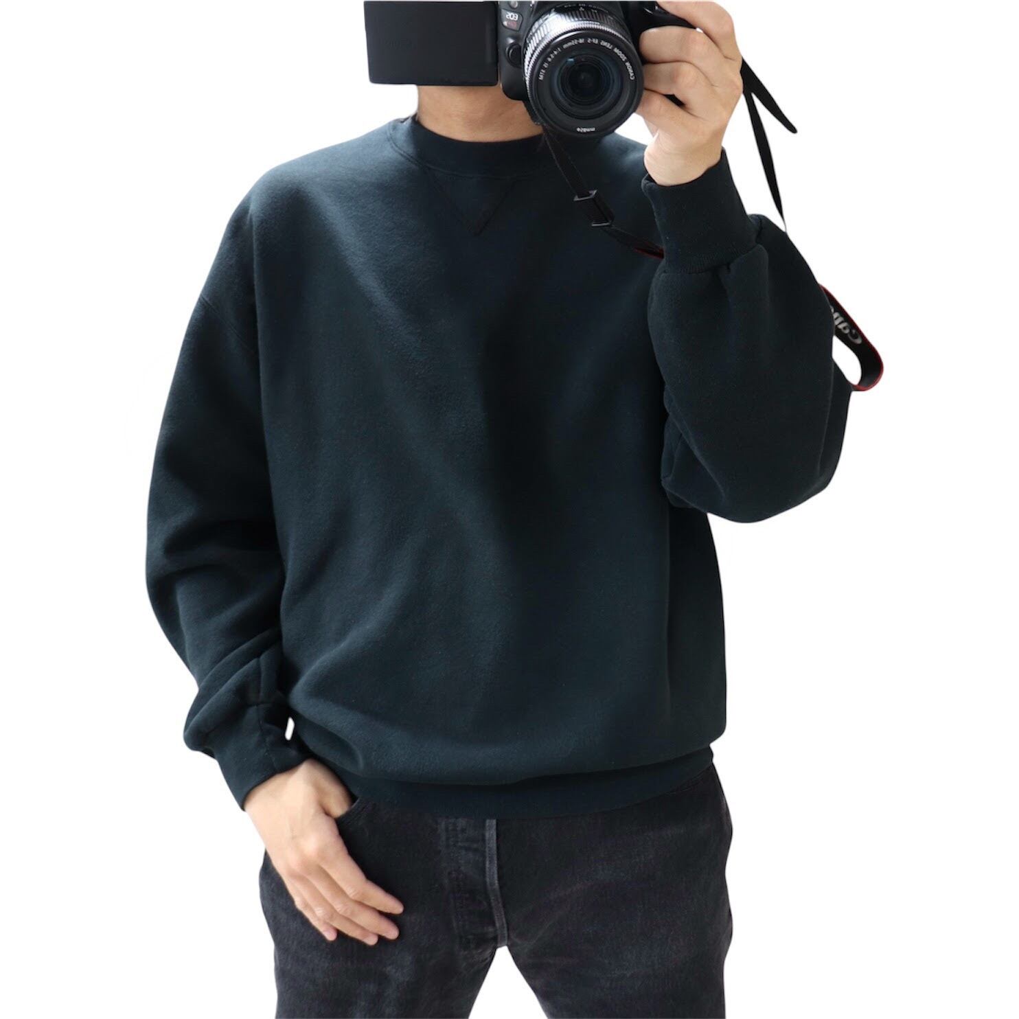 無骨な生地感ながらも、どこかしなやかさのあるラッセルらしい着心地で生地感、シルエットで選ぶと無地としてこれ以上ない一枚と思います。
