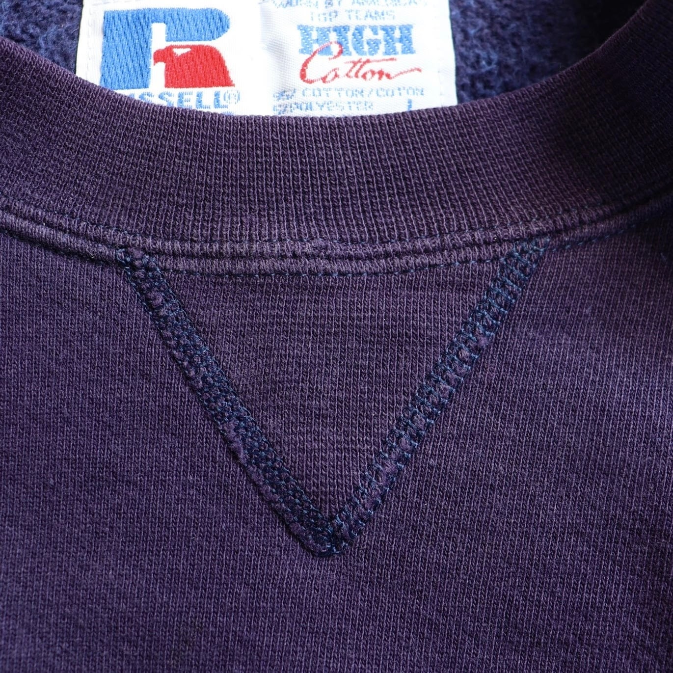 ハイコットン特有のしっかりしたリブのテンションも残っていて伸びやヨレを感じない、風合いだけじゃなく、シルエットまできれいにまとまった、ラッセルのハイコットンだからこその完成度の高さを感じられる一着です。