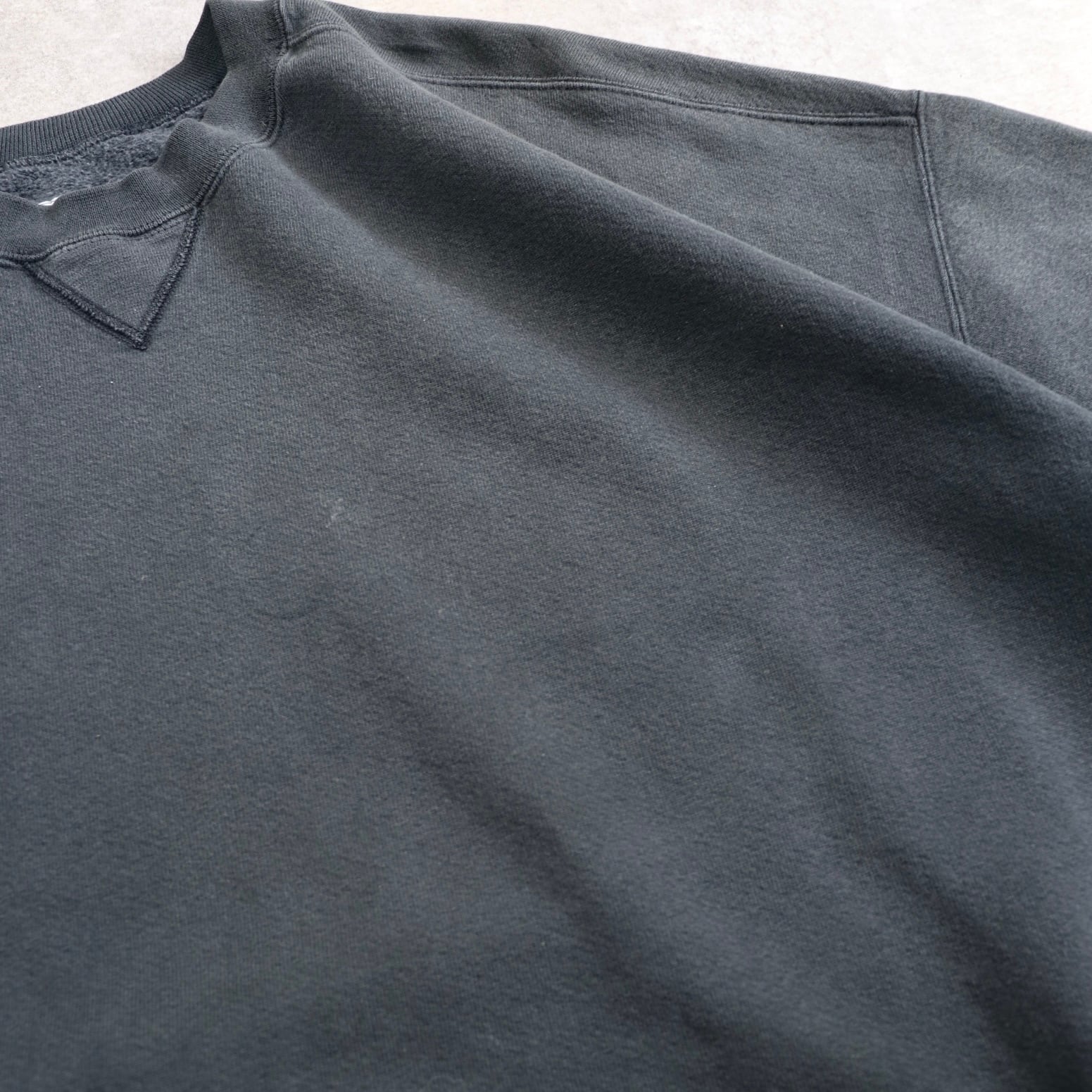 単なるブラックのスウェットじゃなく、リアルな経年変化で、唯一無二の雰囲気に仕上がった個体。