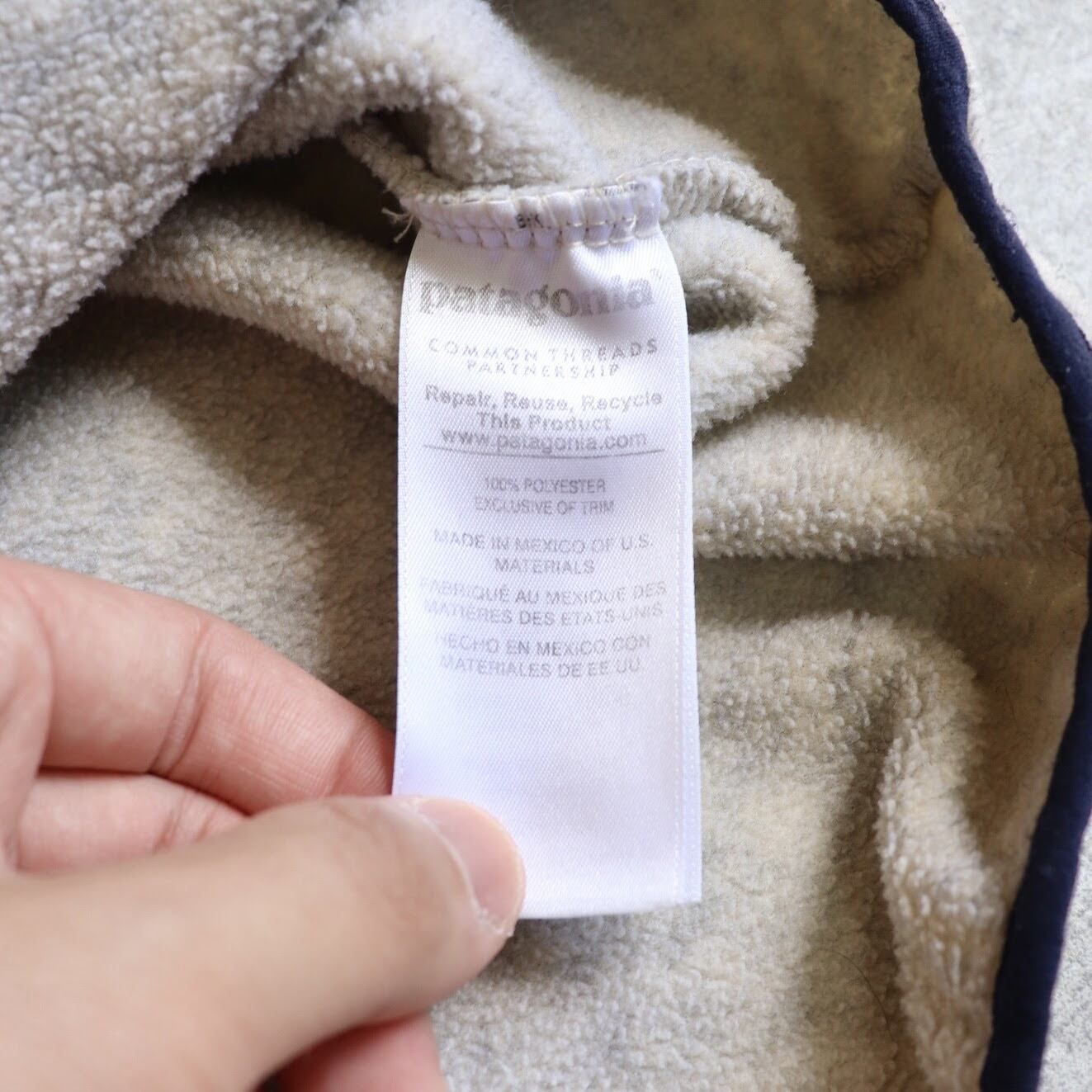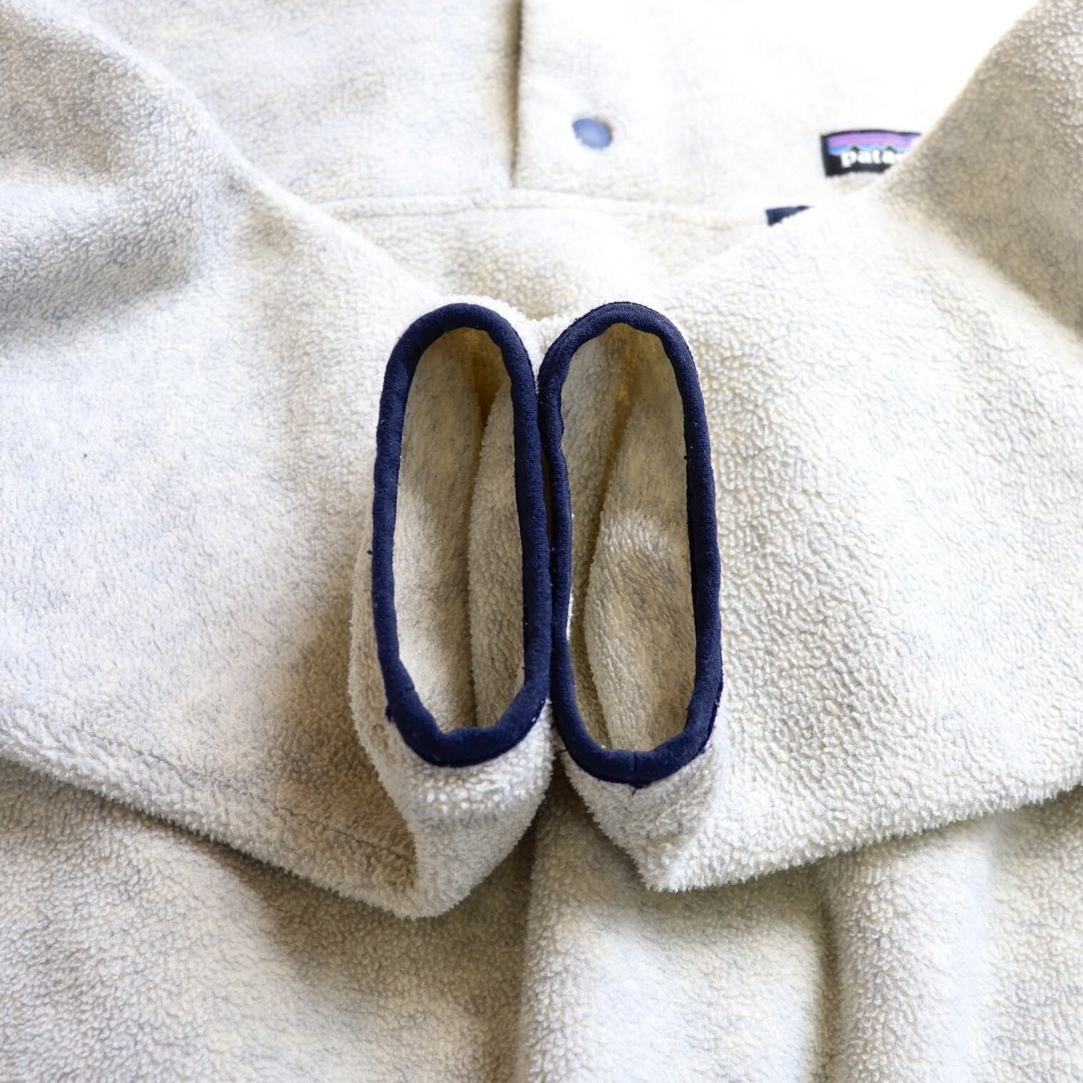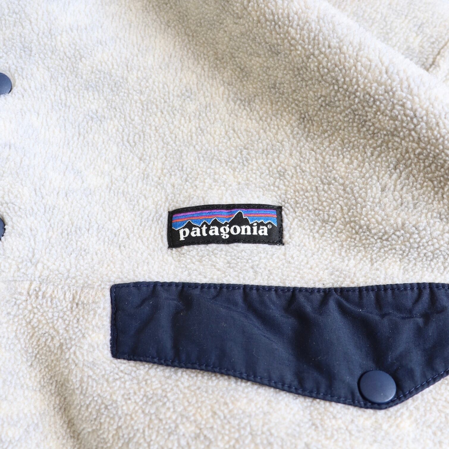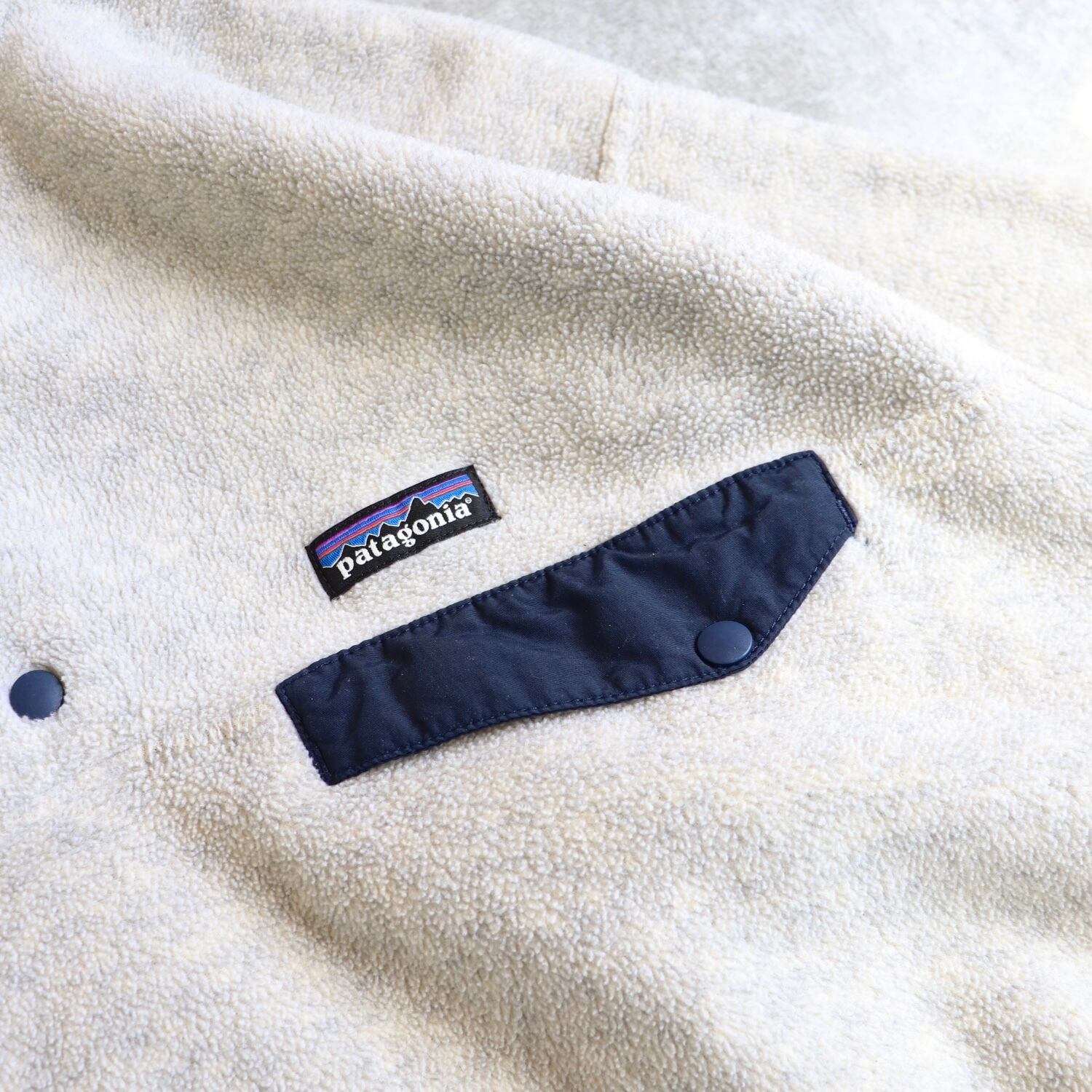 近年物になりますがオートミールに、ネイビーのパイピングとポケットがアクセントになった、パタゴニアらしい間違いない良い配色です。