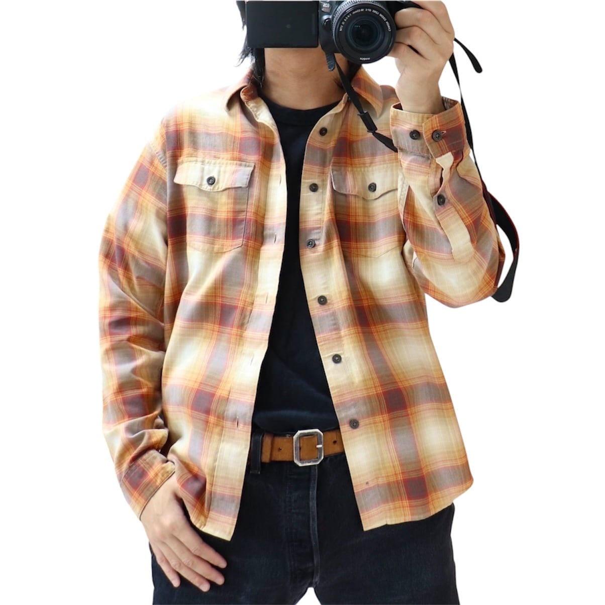 この手のパタゴニアのシャツは大きめの作りなので、表記Mですが実寸、着用感からもL相当のサイズ感。