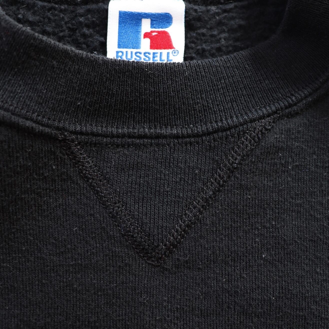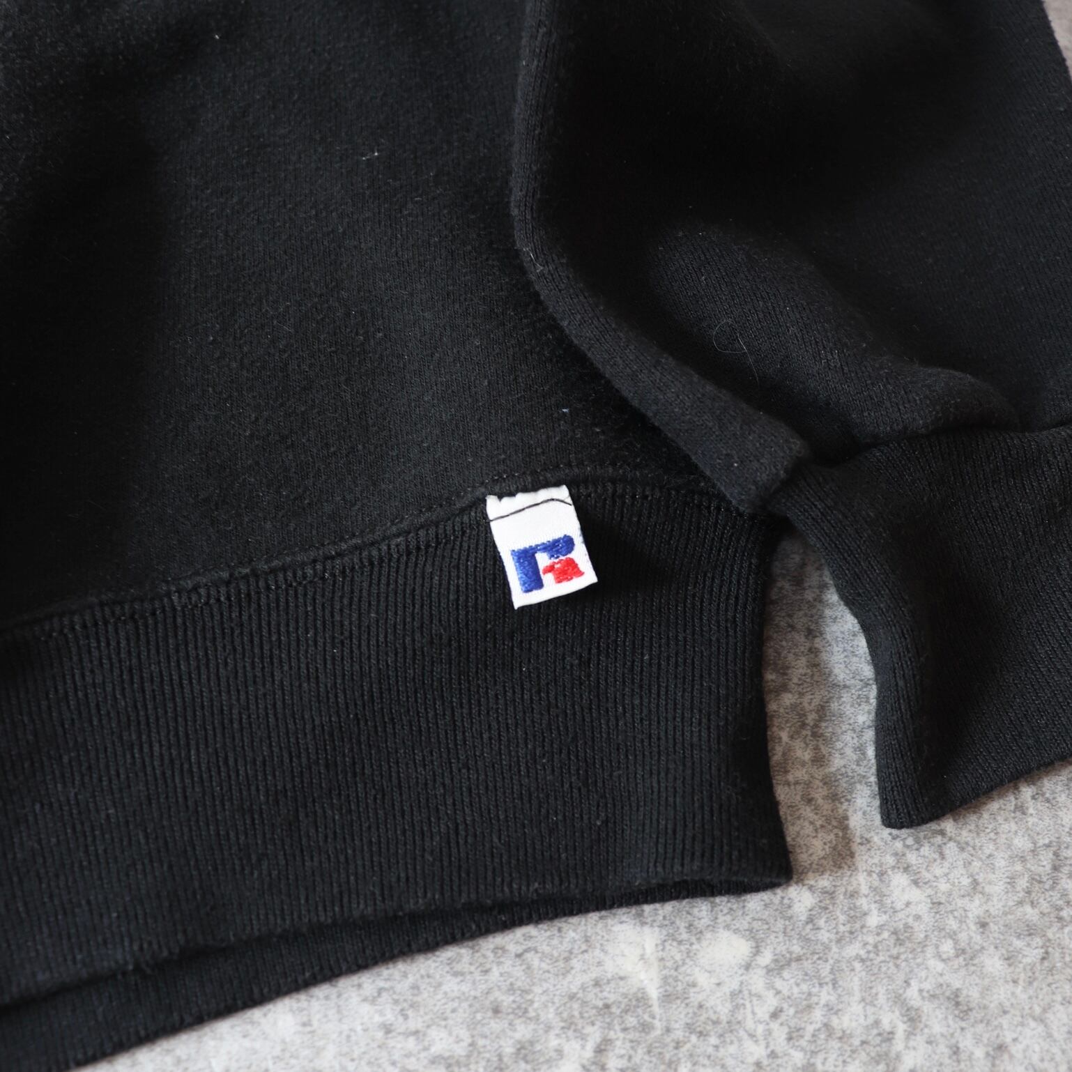 USA製のブラック、さらにXLと条件の揃った一枚。目立つ汚れやダメージもなく、ラッセル特有の程よい弾力も残っている、状態の良さも含めてしっかり選びたい方におすすめできるコンディションです。