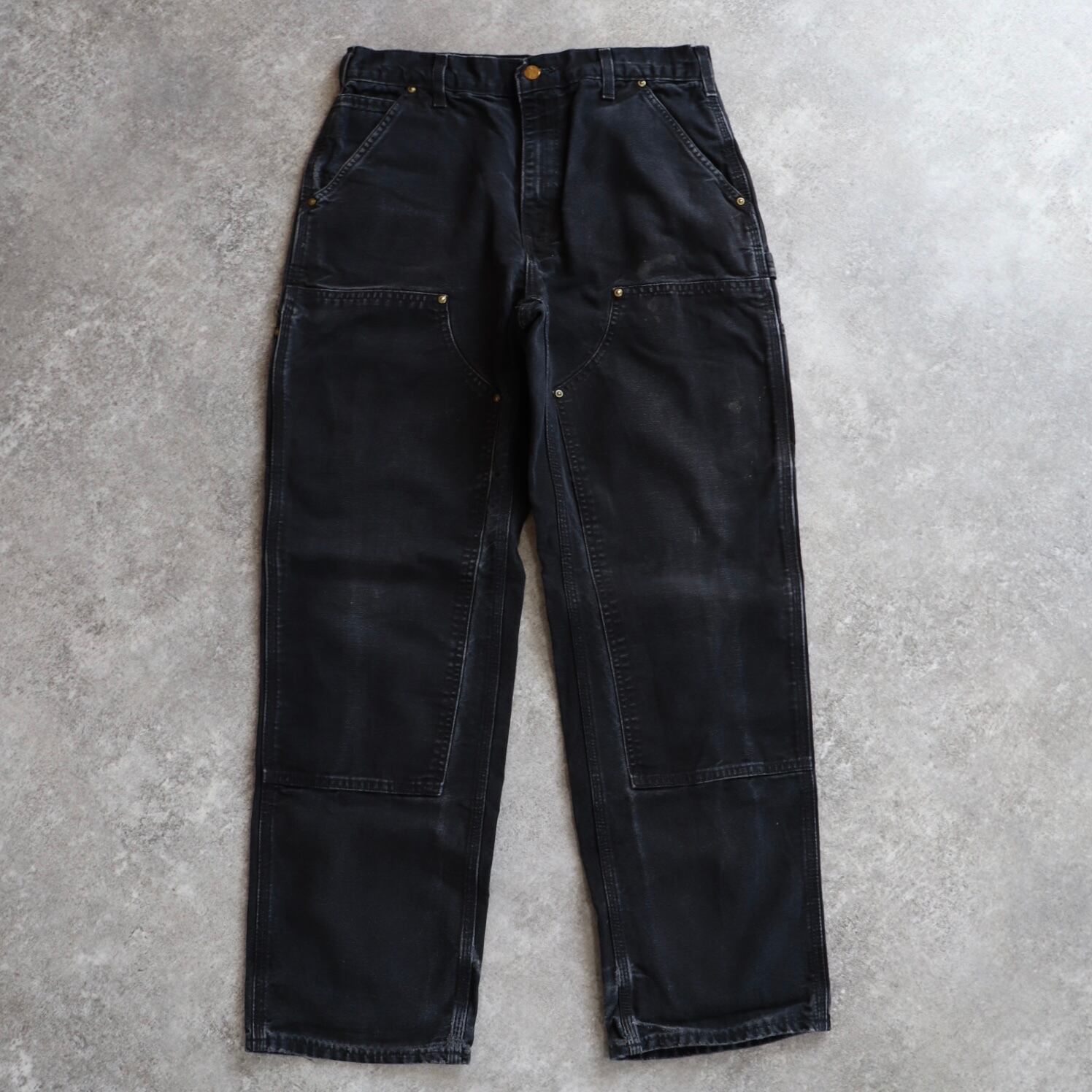 極上フェード!!USA製 Carhartt black double knee painter pants カーハート ブラック ダブルニー ペインター パンツ [32×32]