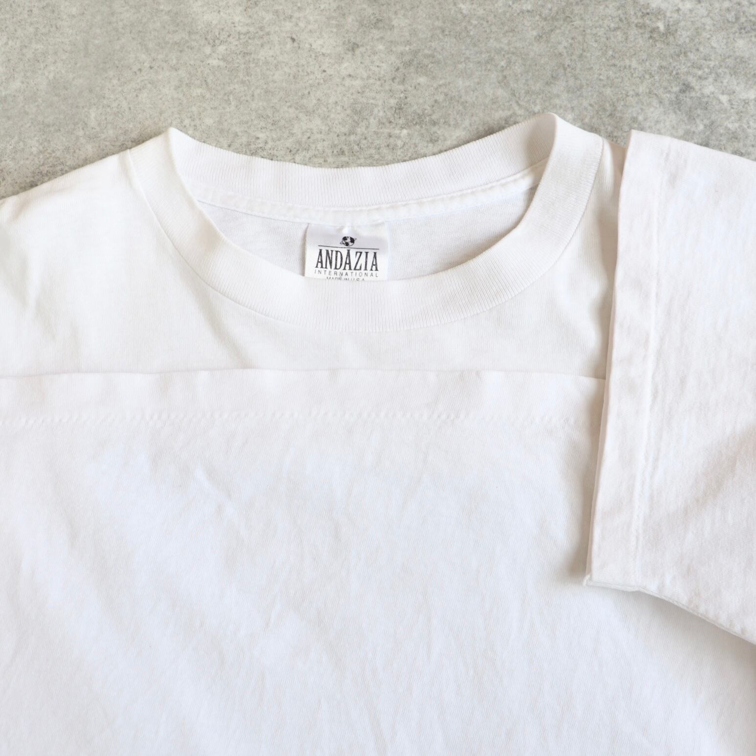 ANDAZIAの白ボディで、グラフィックがサイケっぽく、これからプリントのフェードが進んで良い風合いになっていくのが最高かと。